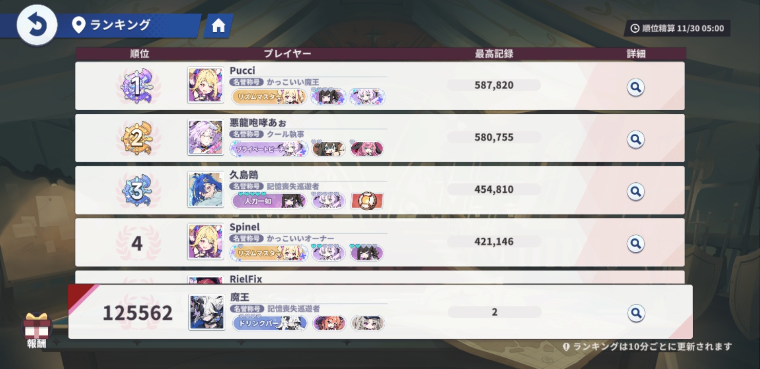 権限25の時に作ったフリージアすらいない無凸チトセとグレイの記録で50000点弱出してそのままずっと放置してるけど今4200位ぐらいでまだ上位10%だぞ