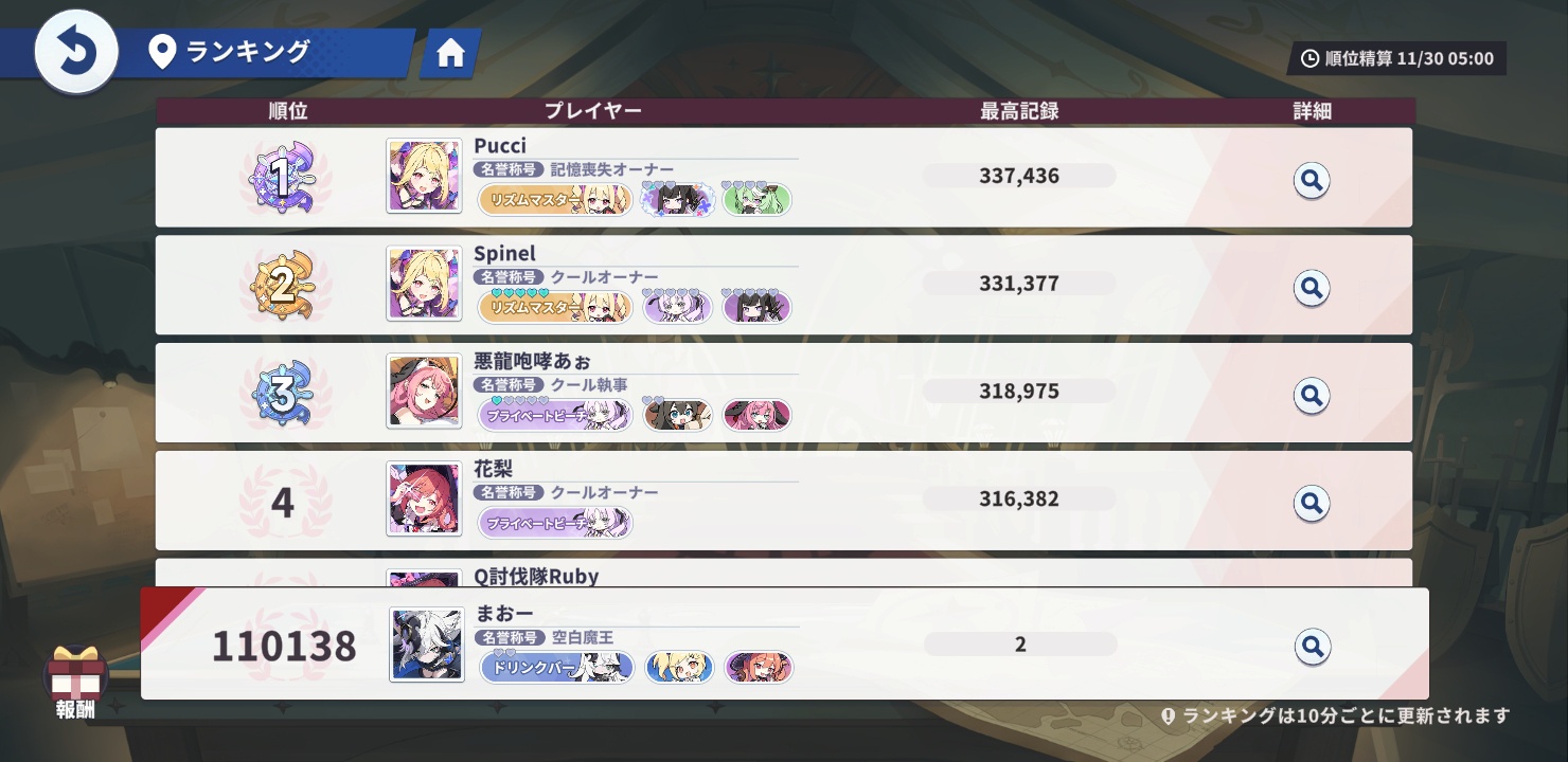 指名手配と大討伐作戦のS1称号を獲得できれば後のランキングは適当でいいわ