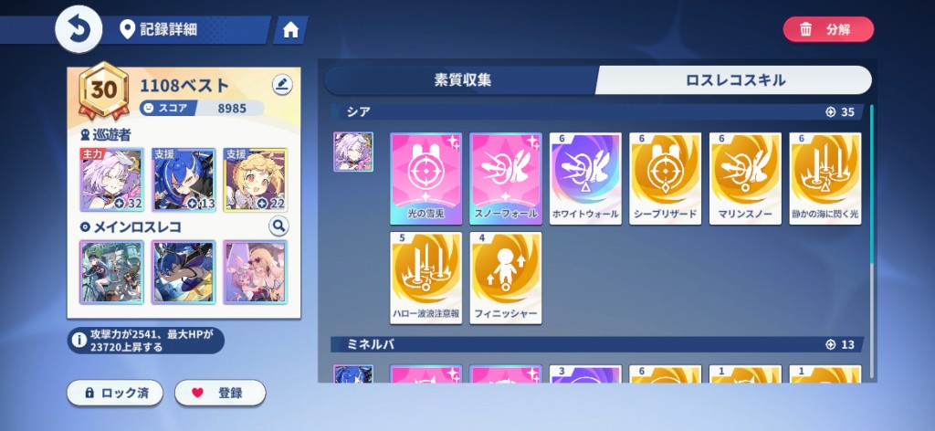 期間内にこれ以上いける気がしないし色々足りてない素材を集めるのにスタミナ使いたい