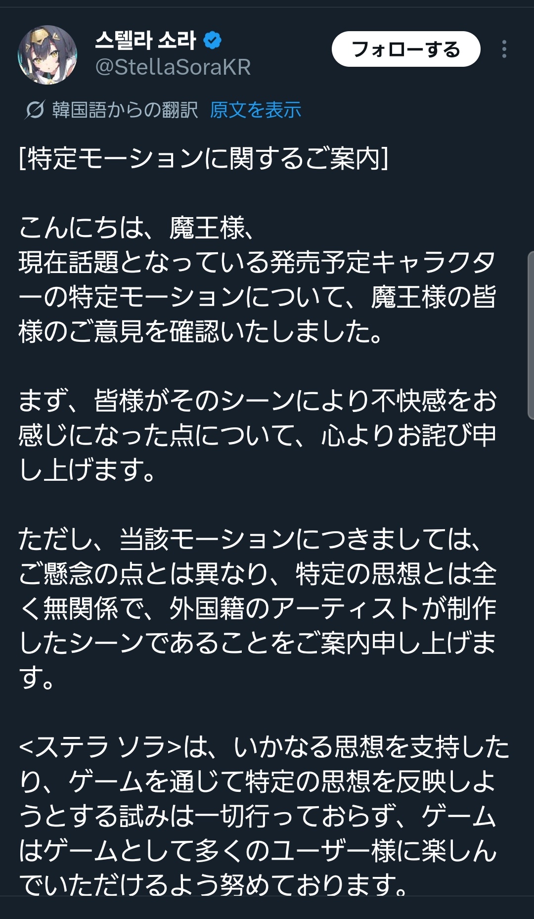 운영팀은 해당 문제를 확인한 후, 마왕님께서 겪으실 혼란을 최소화하기 위해 최대한 빠르게… https://t.co/1OS84drJri— 스텔라 소라 (@StellaSoraKR) November 17, 2025