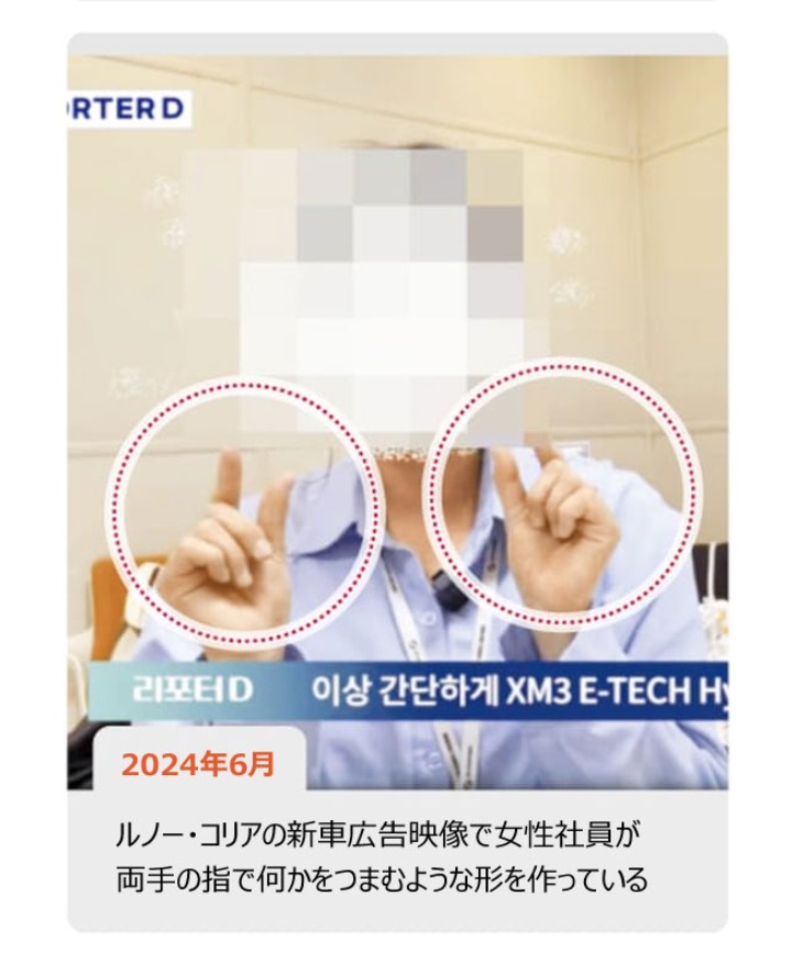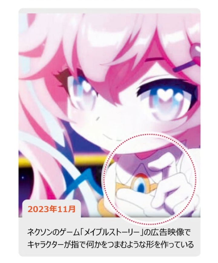 アニメ会社の言い分だとメイプルのアレって♡サインのつもりで、フェミ子はスタッフの下っ端には居たがアレ描いたのも40代男性だしネクソンも8回チェックしたのになんで……って記事があったが。過敏になった韓国のオタクの早とちり疑惑があったりでよくわからん。