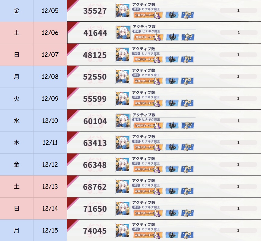 ガチャ更新のタイミングとか期日間際にドカッと増えるなら分かるけどなんでこんなにじわじわ参加してんだよ🤨