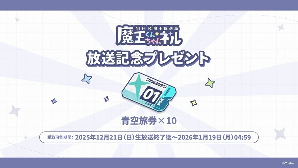 【ステラソラ】公式生放送「魔王くんちゃんネル」まとめ まとめ X Facebook はてブ Pocket LINE コピー 2025.12.21 限定のラール(聖夜)が登場 フリージアのアナザーイメージ 年末年始のログインボーナス 新コンテンツ頂上決戦 メインストーリー更新 ノヴァ漫遊記の追加 一部キャラにボイスが実装 事業支援のシーズン更新 骸魔防衛線上級 指名手配シーズン3 大討伐作戦に新難易度「再臨」が追加 放送記念プレゼントの配布