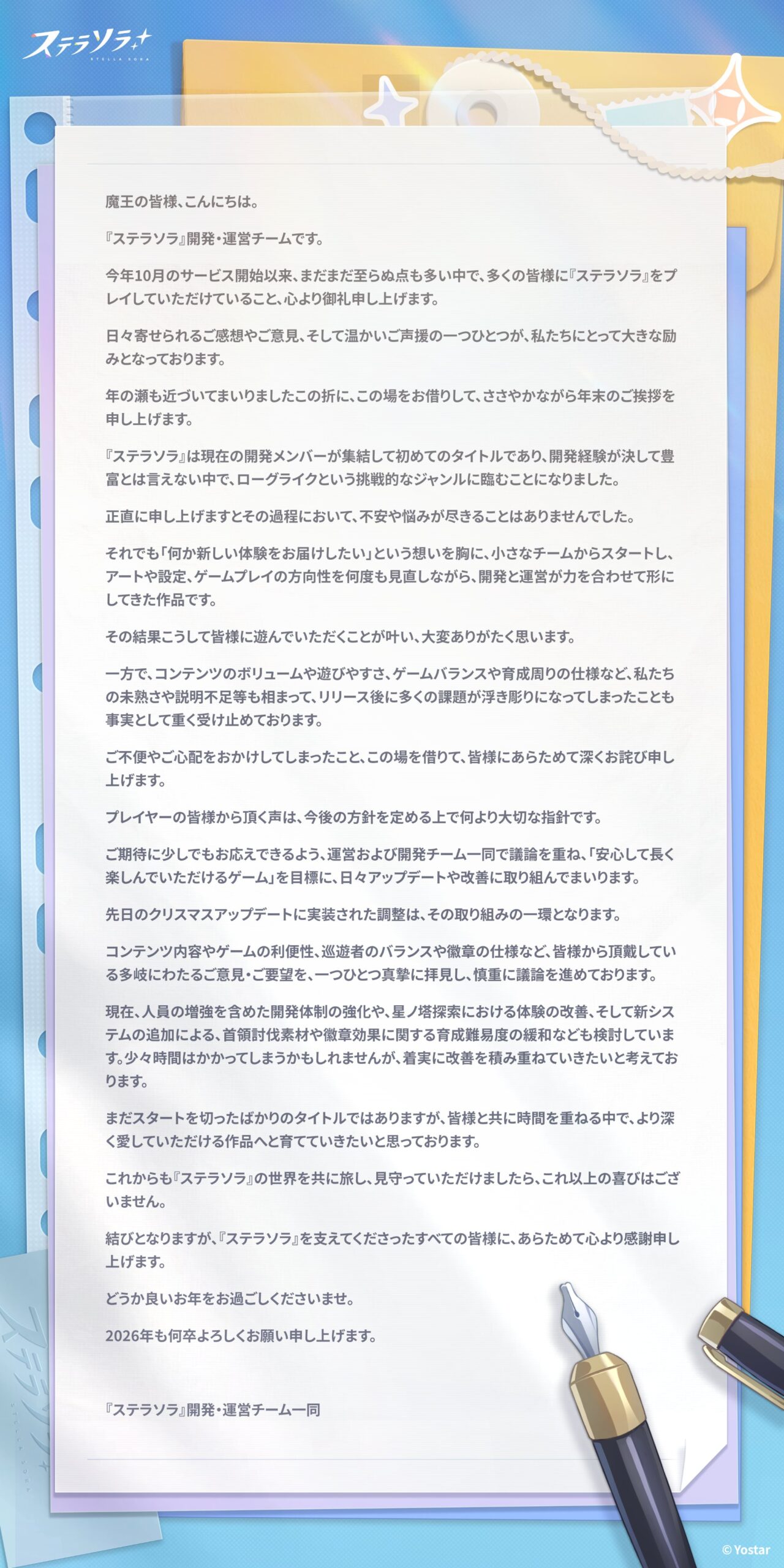 個人的には、今からステラソラやってみる層にテコ入れあった方がいいんじゃないかとは思うが