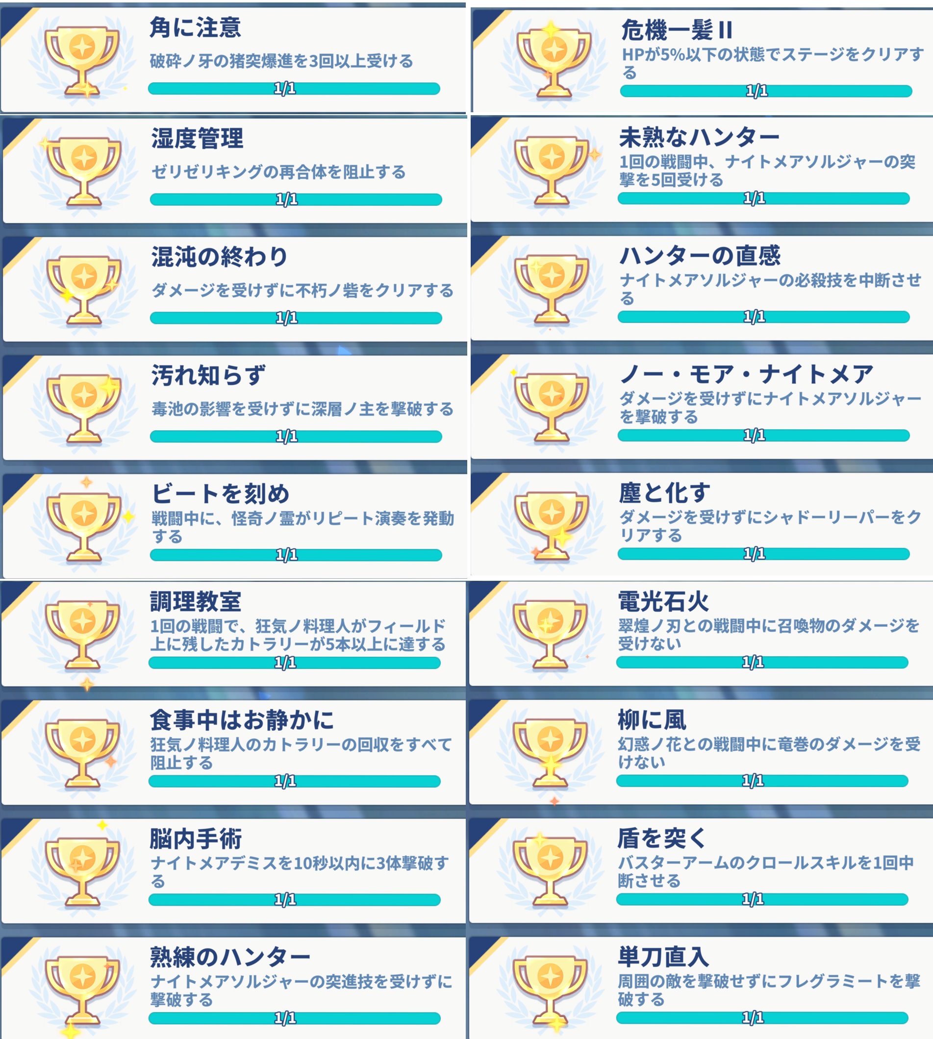 なんかボスノーダメージとか特定の条件を満たしてボス撃破みたいな隠し実績がだいぶあるけどこれ全ボスにあるんかな